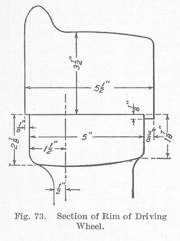 It is difficult to get sufficient counterbalance in centers smaller than 60 inches in diameter so that it will be found very desirable to core out the rims to obtain the maximum lightness on the side next to the crank pin and in some cases on the counterbalance side in order to fill in with lead where necessary.
