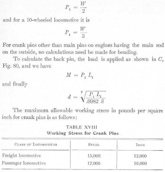 This equation may be used in finding the diameter of the main crank pin on any type of locomotive when the loads and lever arms are known and the safe fiber stress has been assumed. It should be remembered, however, that for an 8-wheeled locomotive it is