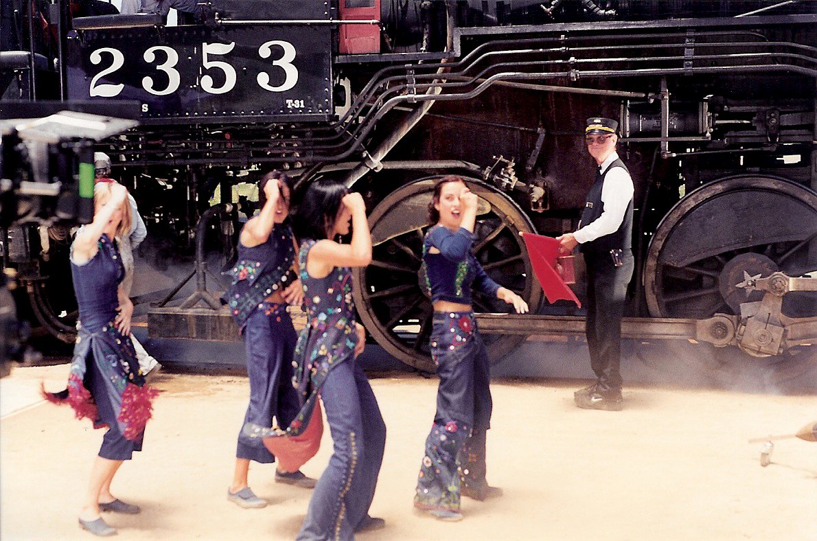 SP #2353 starred in another production on July 22 and 23. The Irish group B*Witched sang "Jesse Hold On" and danced their way through the Campo depot area, with many scenes featuring our big steamer as a background. The four girls from Dublin (twins Edele and Keavy Lynch, Sinead O'Carroll and Lindsay Armaou) worked hard for two long days, even though the hot weather was nothing like that in Ireland!