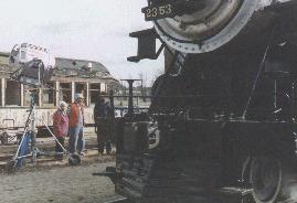 The production designer, David Ensley, initially asked if the Museum had a diesel locomotive that would fit into the 1941 time frame. I said that while we have a Fairbanks Morse H20-44 from 1948, perhaps we could interest him in a live-steam locomotive. #2353 had just made its first move of about six feet, and I felt confident that Larry Williams, Richard Dick and the Steam Team would jump at the chance to show off their "iron". The date was February 9, 1996