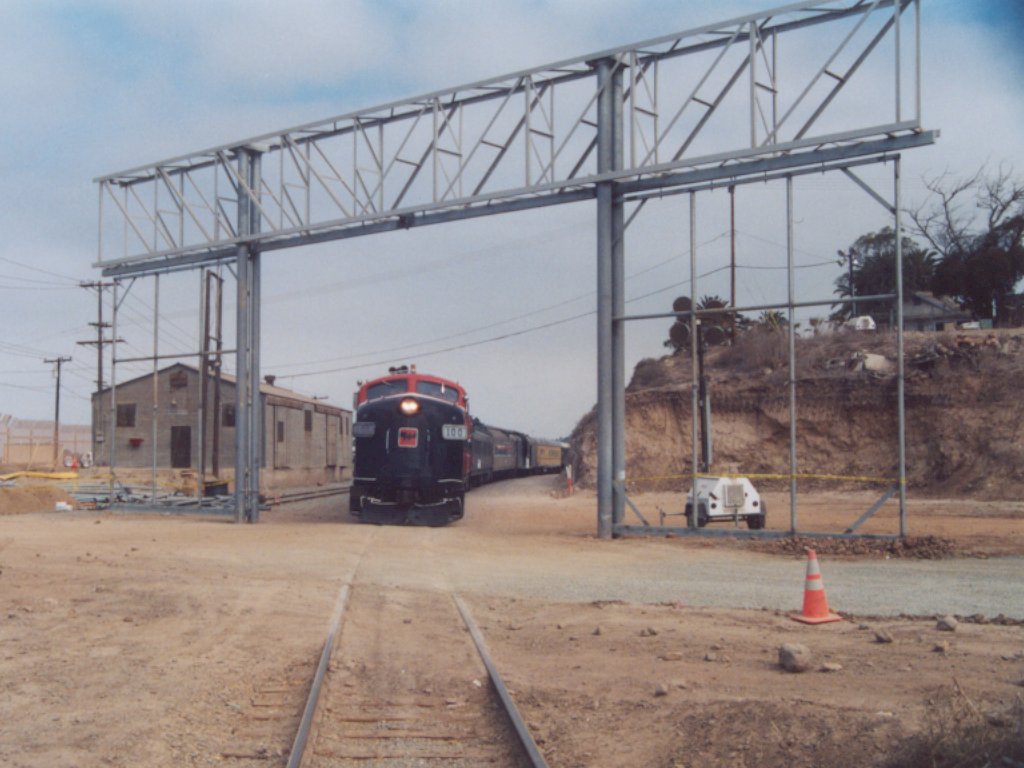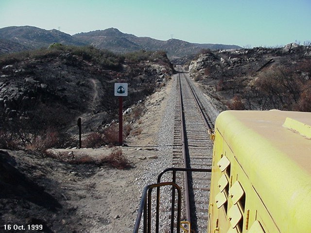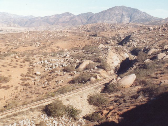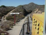 #7285 leads a WB at Dogpatch. The tracks have just crossed over Hwy. 94. |