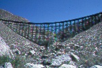 Now San Diego's "Impossible" Railroad is an 100% dieselized freight only line except for the "Mixto" through Baja California and the "Operating Ratio" has improved remarkably. At this time, a hog can thrill to the awe-inspiring vistas from his car in the train moving cautiously through Carriso Gorge but you, the traveling public, can not.