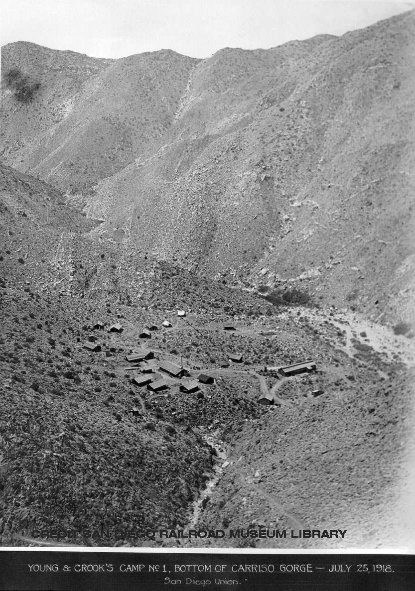 Track laying was started east from Campo and the towers and piers for the Campo Creek Bridge were completed by the end of the year.