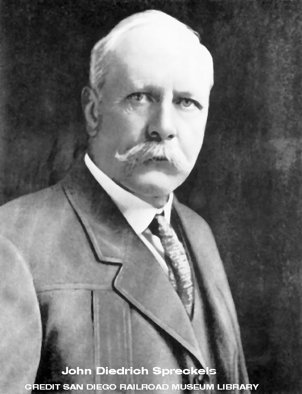 The San Diego and Arizona Railway Company had been incorporated secretly in June by John D. Spreckels, his brother Adolph B., they being the sons of Claus, the Sugar King of San Francisco; John D., Jr.; William Clayton and Harry L. Titus.
