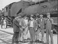 The first Diesel-Electric locomotive, Southern Pacific number 5217, to pull a freight train over the mountains left El Centro on February 5, 1950, on a trial run. Officials on board were S. A. Lamey, Trainmaster, Yardmaster and Chief Operating Official, Carl Eichenlaub, Division Engineer (now superintendent) and E. Harrison, Dispatcher at Mexicali. If diesels prove satisfactory, Harrison said, they will also be used to pull passenger trains. Later one was tried out on the El Cajon branch and other assignments.