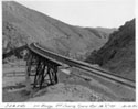 Scarcely had service been resumed when a huge mountain slide, loosened by heavy rains, blocked the line in the vicinity of Tunnel #15 on March 27th. After an engineering study had been made and plans prepared for a change in alignment, about one-half mile of new roadbed was constructed, including the building of a high wooden bridge on a 15 degree curve and tunnel changes. Freight and passenger services were re-established on July 6th and 7th and the cost ran up to $317,000.