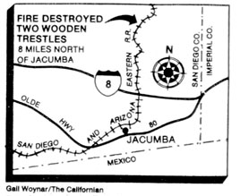 "The bridges were completely destroyed, burned thoroughly," Rick Cecil, general manager of the San Diego & Arizona Eastern Railway, said today.
