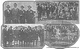 Left to right-E. R. Hutton. New York, secretary; Arthur G. Bloom, newly elected president; and C. M. Knowles, retiring president. Upper right group was taken at Apache Trail Lodge, and two lower groups at Oakland Pier.