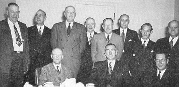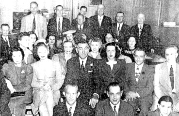 HAROLD ORNER (seated at right), whose promotion to assistant district passenger agent, San Diego, was announced in the November Bulletin, was given a welcome party by his new associates. Present were (left to right, seated): Nels Kinell, asst. genl. passenger agent, Los Angeles; Tom Fielding, traffic manager, SD&AE; H. S. Orner; (standing) W. D. Douthett, traveling passenger agent; L. D. Carroll, city freight and passenger agent; Bruce Adams, traveling passenger agent; D, L. McNaughton, chief of military bureau; G. O. Culley, traveling freight agent; Herman Kefel, city ticket agent; Joe Bartleft, chief of Pullman and information bureau; W. E. Rosendale, traveling passenger agent.