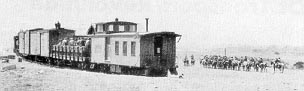 THIS HISTORIC PICTURE was unearthed by one of our retirees, Frank C. Heath of Comptche, California, after he read our article last month on "The War That Ended in a Railroad Caboose." It shows the insurrectionists commandeering the San Diego & Arizona Railway train in which their ill-fated adventure died, June 22, 1911. Frank, like the hero of our true story, the late W. G. McCormick, was a conductor on the old SD&A, now our San Diego & Arizona Eastern.