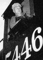 Chief Engineer Kallright had been one of the trusted assistants of Chief Engineer William Hood of the Southern Pacific. To join his staff as office boy in 1914 came young Carl Eichenlaub, who - although he had been crippled in an accident at the age of 13 - worked his way through school to become an engineer and take charge of the drafting room in 1918. Now, as superintendent, he not only is top operating man on the ground but has the longest service record of anyone in the railroad.