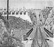 (Photo left)Towering Rodriquez Dam our train rolls smoothly across one of the stout bridges in Mananuca Canyon.
