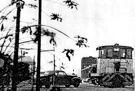 In the outskirts of National City the friendly hooting of our engine warns automobiles to stop short of the crossings. At one point, children are too close to the track for Engineer Marshall's peace of mind. He keeps his hand on the brake until they move back - and he makes a mental note to notify their parents that railroads are no place for playing!