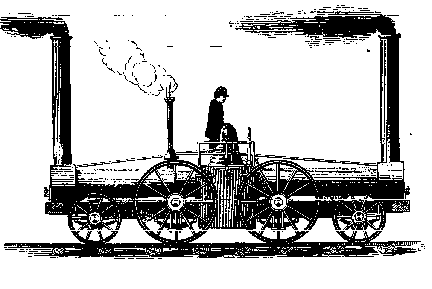 | 1825: | Stephenson's 8-ton LOCOMOTION No. 1 built for the Stockton & Darlington Railroad. Capable of pulling 90 tons of coal at 15 mph. Stephenson plans all details of the line, and even designs the bridges, machinery, engines, turntables, switches, and crossings, and is responsible for every part of the work of their construction. (The passenger coaches of this time were all drawn by horses.) |