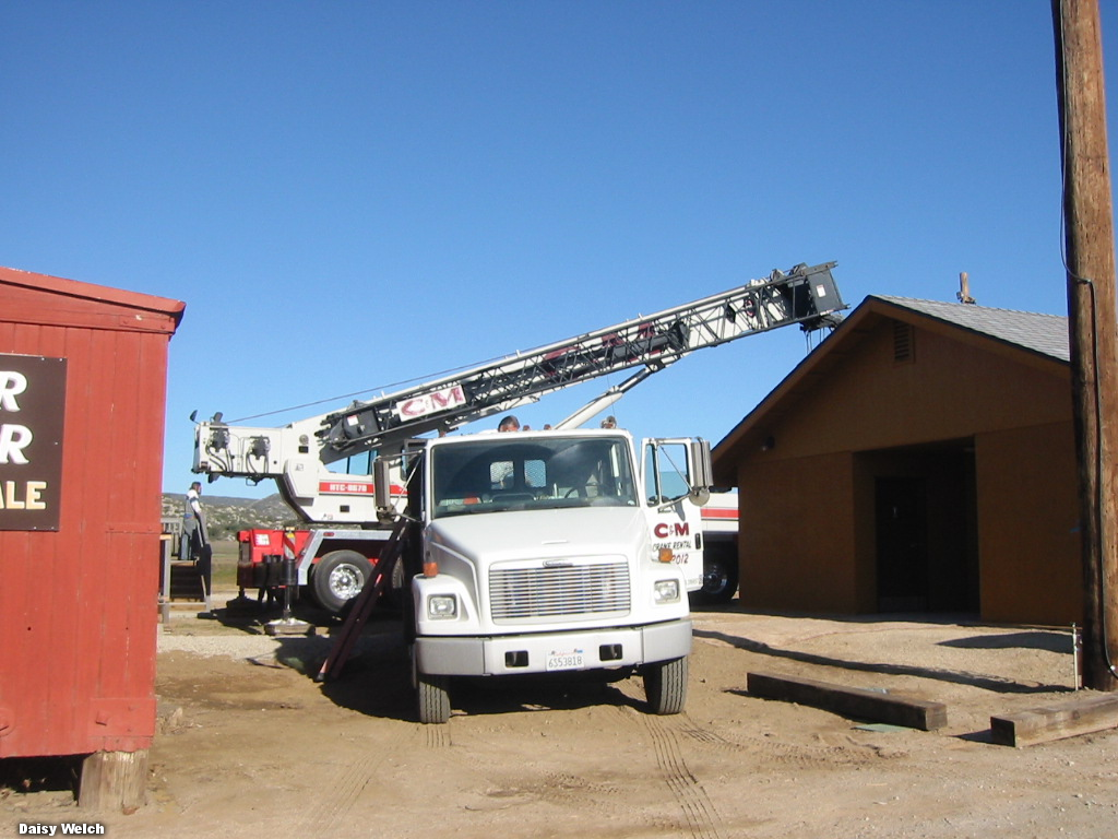 by Daisy WelchOn Tuesday March 17th 2009, Cid Carlson and Frank Schudar from C & M Crane Company arrived bright and early with a big crane and support truck to move some heavy things that we couldn't reach with our rail-crane. These fine gentlemen donated their time, expertise and equipment to help us out.