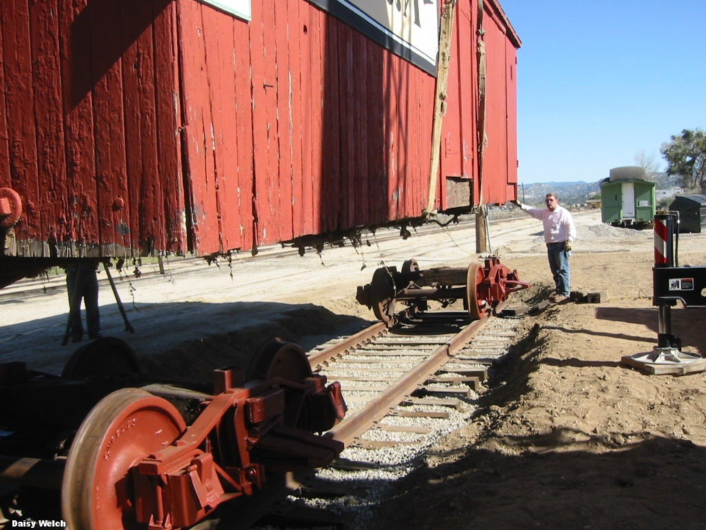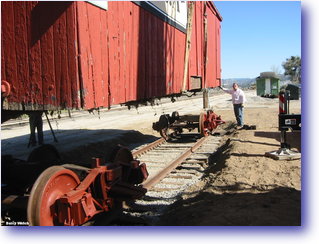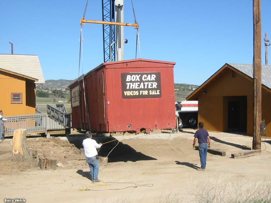 The first project was moving the ancient wooden boxcar that has been sitting next to the Campo Depot for approximately 93-years. It served as the Museum's movie theater since the mid 1980s. Our new restroom building requires that we lay a brick walkway from the Depot, and the boxcar theater had to be moved out of the way.