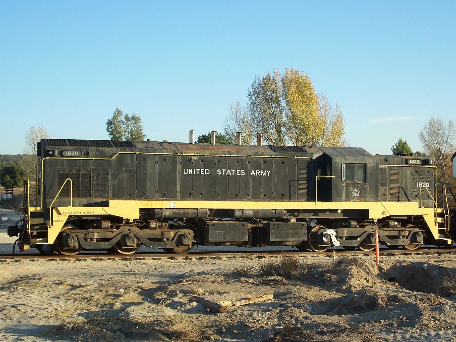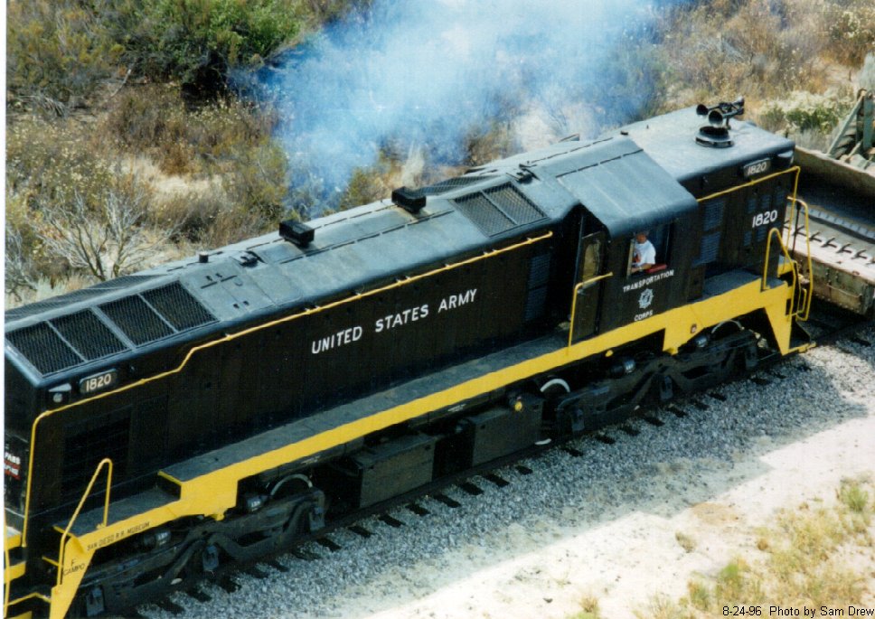 In 1981, the museum sought two low-mileage MRS-1 locomotives. Only the EMD type were available, as ALCo/GE units were then classed as "strategic material". In early 1982, USA #1820 was donated to the PSRMA with some components missing (including brake handles), after release as surplus by the Army Rail Item Manager in St. Louis, Mo.. It cost $500, paid to California's Surplus Property Department, plus charges to have its journals repacked and air brake tests made. It was taken free of charge with EMD MRS-1 USAF #1809 (also donated) by the UP, Santa Fe, and SD&AE to San Ysidro, Ca., and brought up to Campo in July/August 1983 on the museum's first "Great Freight".
