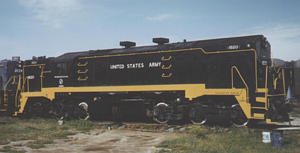 This multi-gauge road switcher trained military railroad personnel, served on frozen Canadian tundra and hot western deserts, and was painted in four different paint schemes --- all of them black!Built by Electro-Motive Division of GM, LaGrange, IL; March 1952