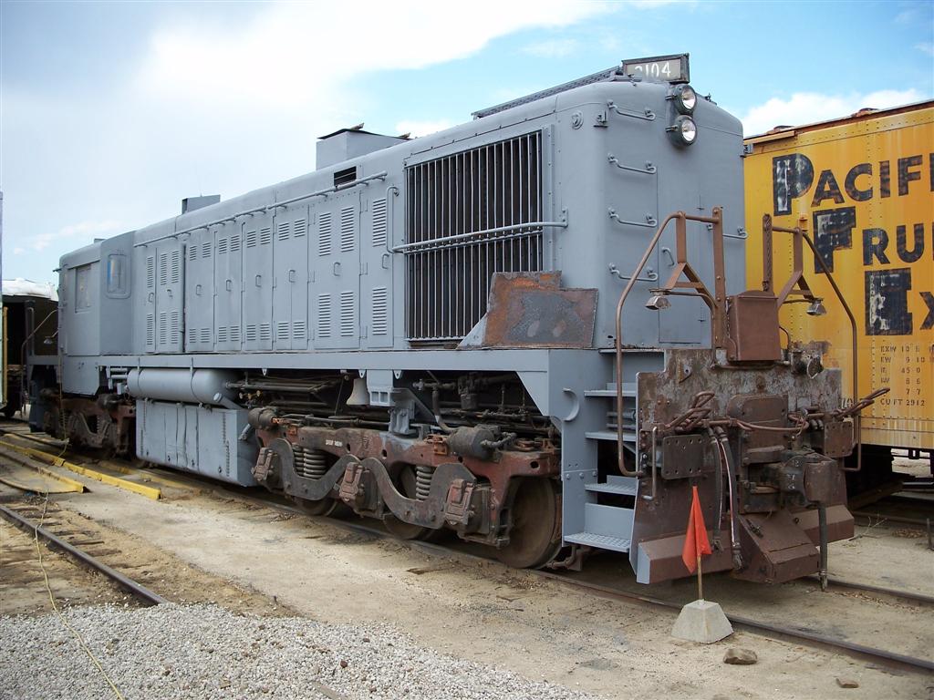 On March 15, 1991, USAF #2104 was moved free of charge by the SP, Santa Fe, and SD&IV to San Ysidro, Ca., arriving April 12th. The SD&IV took it to Campo July 12, 1991 on "Great Freight IV", where it was repaired and restarted for the first time November 2, 1991. USAF #2104 is being used as additional and backup museum SD&A excursion train power.
