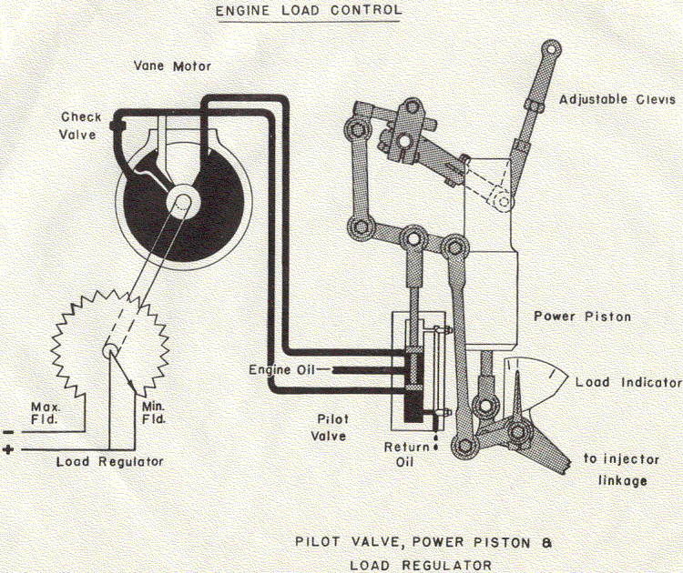 4. The horsepower output of the Diesel engine and generator is controlled, and held to a fixed amount for each, by the action of the governor and load regulator.