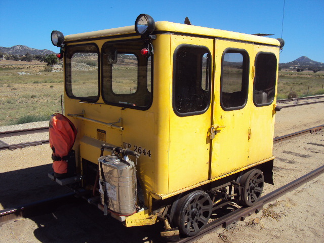 The car probably saw light use on the Union Pacific as the transition to Hy-Rails was already well under way in 1986. By 1990 UP had sold most of its' motorcars auctioning many at Fort Worth, Texas. UP 2644 passed through brokers to narrow gauge Sumpter Valley Railway (SVRR) in Oregon. They intended to narrow it, but never did.