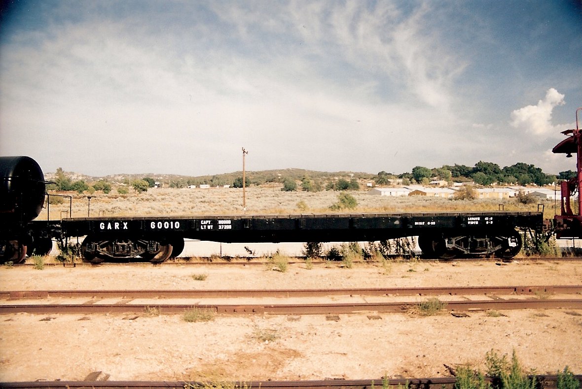 The restored flatcar is on display in operating condition on the museum's freight car line near the Campo depot. On May 25, 1991 it was used as the stage for a country and western band during the local "Campo Days" weekend fair. GARX #60010 will also be used in hauling rail and other components for repair and replacement work on the museum's SD&A demonstration railway.