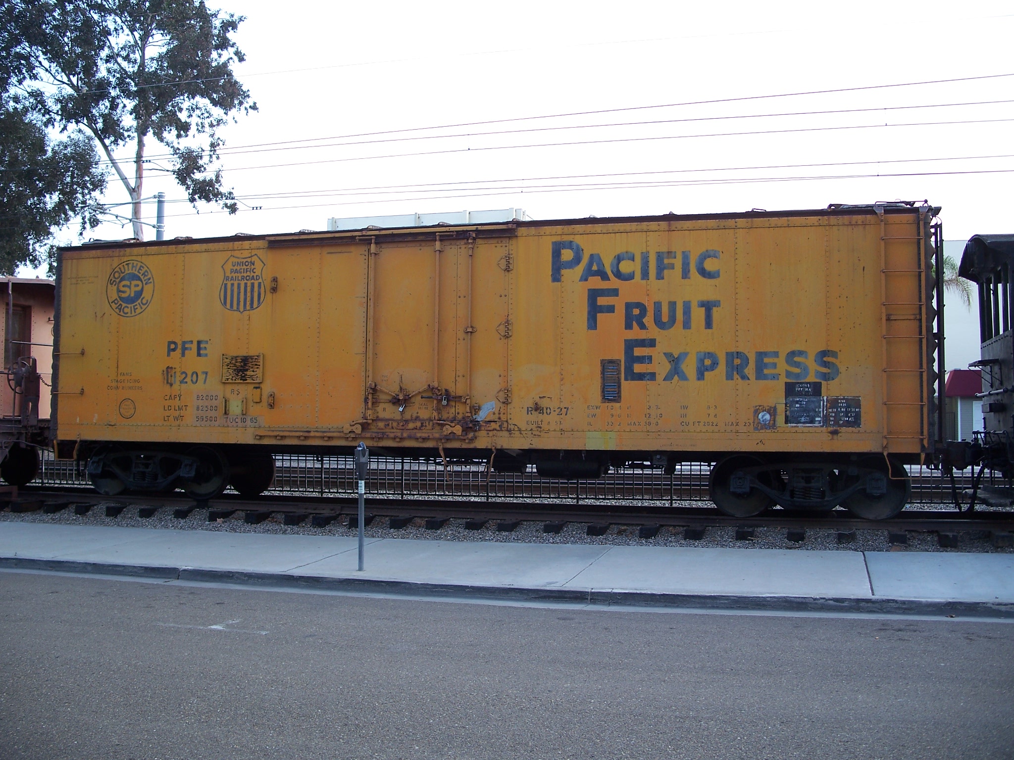 Retired in 1986, PFE #11207 was bought by PSRMA Board of Trustees member Dan Marnell for exhibit at the La Mesa Depot, operated by the PSRMA and the La Mesa Historical Society. The 1894 San Diego, Cuyamaca, & Eastern Railway depot is La Mesa's oldest building. The car has been leased to the Museum by Dr.Marnell for $1 a year.