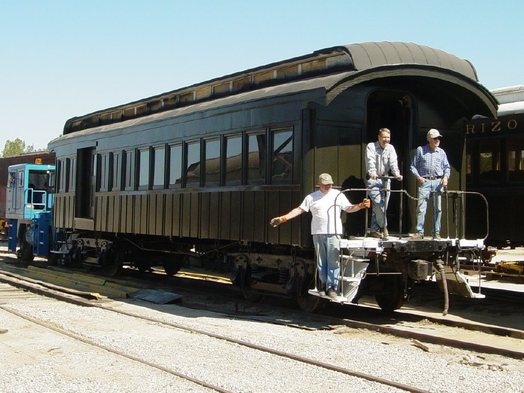 RS&S #3 (listed as D&R #13) and D&R #14 were traded in April 1976 to the PSRMA, trucked to Poway, CA June 7-8, and displayed for seven years at Old Poway Village, where roof and other repairs were made. Trucked to Campo February 10, 1983 and placed in the carbarn on the 12th, they were the first museum passenger cars there. It was finally identified as RS&S #3 in 1988.