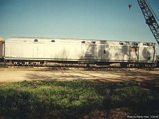 When the movement of racehorses was taken over by specially-built trailer trucks and in some cases airplanes, ATSF #1997's use as a horse/express car ended. It was in Santa Fe's Chicago coach yards in May 1972, awaiting disposition. As often happened with cars no longer needed for their intended service, ATSF #1997 was converted into a Maintenance-of-Way car. It was rebuilt into a Class WK-50 Roadway Machine Parts work car at the Santa Fe's Cleburne, TX shops August 2, 1974. Two doors per side were replaced by walls, leaving only one sliding door per side. Painted silver and renumbered ATSF #205993-MW, it was used by the Santa Fe in maintenance service.