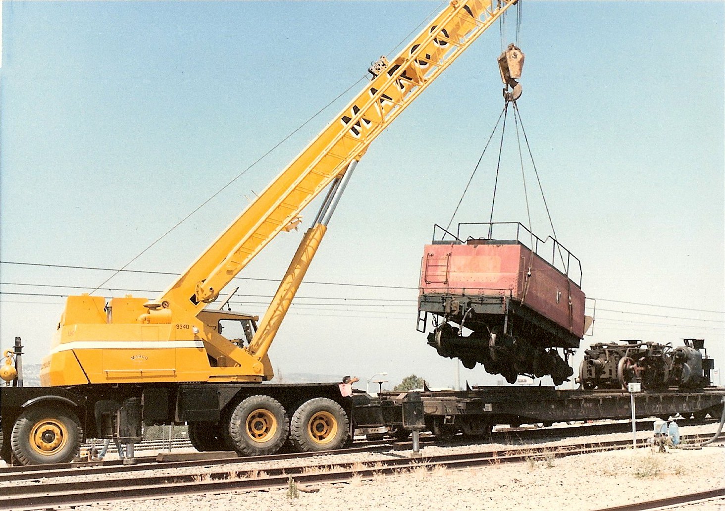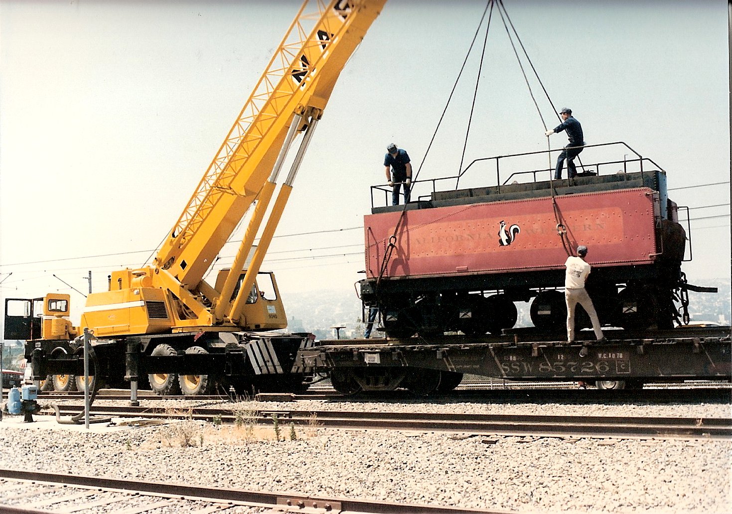 Five photos by Ted Kornweibel of No. 46 being unloaded at San Ysidro in 1986
